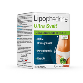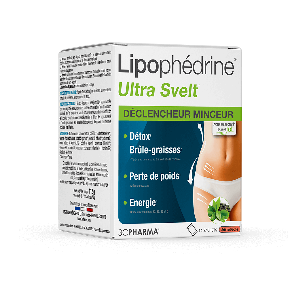Η 3C PHARMA ® προσφέρει το LIPOPHEDRINE Ultra Svelt1, ένα συμπύκνωμα ενεργών συστατικών σε ένα ποτό ευχαρίστησης που δρα σε πολλούς άξονες αδυνατίσματος: καύση λίπους2, αποτοξίνωση3, εξάλειψη3, απώλεια βάρους1, λακκάκια1, χωρίς απώλεια ενέργειας4 ...