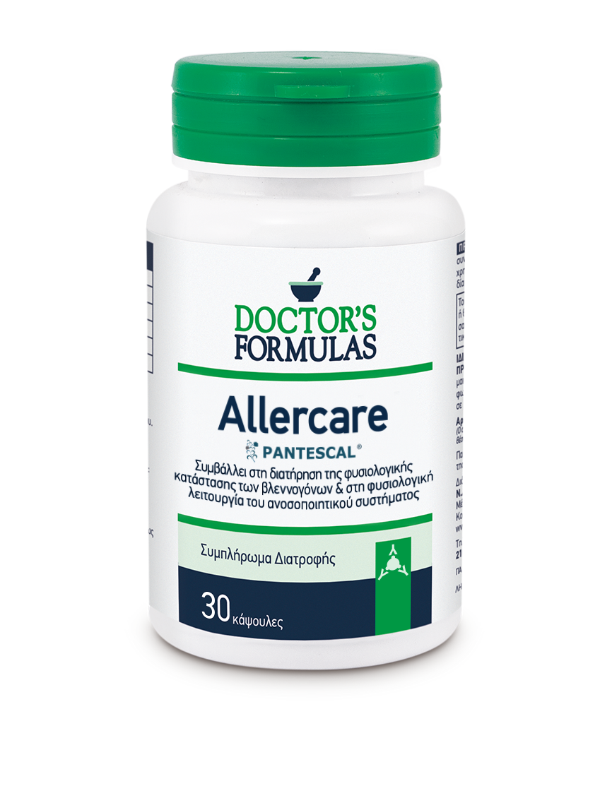 Η φόρμουλα AllerCare περιέχει το Pantescal® που είναι μια σύνθεση που περιέχει εκχυλίσματα από Capparis Spinosa, Olea Europaea L., Ribes Nigrum, Panax Ginseng, μαζί με βιταμίνη Β2 (ριβοφλαβίνη) και βιταμίνη C.