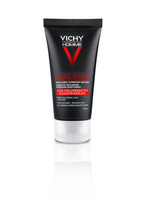 Η Vichy δημιούργησε την 1η αντι-γηραντική φροντίδα για τους άνδρες, με αποδεδειγμένη αποτελεσματικότητα στα 4 σημάδια γήρανσης της ανδρικής επιδερμίδας: απώλεια της σφριγηλότητας, ρυτίδες γύρω από τα μάτια, υφή της επιδερμίδας και χαλάρωση. Το περίγραμμα του προσώπου αναδιαμορφώνεται.