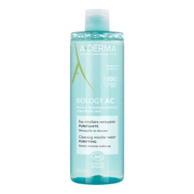 Αυτό το εξυγιαντικό νερό καθαρισμού & ντεμακιγιάζ με μικύλλια και 100% συστατικά φυσικής προέλευσης, καθαρίζει την επιδερμίδα χωρίς να την ξηραίνει και αφαιρεί απαλά το μακιγιάζ. Αυτή η αποτελεσματική καθημερινή θεραπεία για το λιπαρό δέρμα σε προέφηβους, εφήβους και ενήλικες, καθαρίζει το δέρμα με τάση ακμής. Απομακρύνει τους ρύπους, συσφίγγει τους πόρους και βοηθά στην ισορροπία του μικροβιώματος. Το δέρμα καθαρίζεται, εξυγιαίνεται και είναι απαλλαγμένο από μακιγιάζ και ρύπους. Με φυσιολογικό pH και κατά των ρύπων σύνθεση που προστατεύει τον φραγμό του δέρματος, το Biology AC νερό καθαρισμού & ντεμακιγιάζ με μικύλλια αφήνει το δέρμα απαλό και φρέσκο. Αυτό το νερό καθαρισμού & ντεμακιγιάζ με μικύλλια με το απαλό άρωμα που προέρχεται από τα φυτικά συστατικά του, περιέχει βιολογική βρώμη Rhealba®.