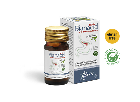 Το NeoBianacid Οξύτητα και Παλινδρόμηση περιέχει Poliprotect, ένα μοριακό σύμπλεγμα που προέκυψε μέσα από τις έρευνες της Aboca, με βλεννοπροσκολλητικές ιδιότητες.