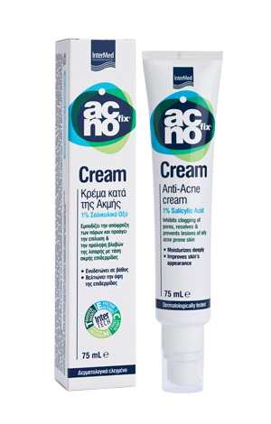 Η Acnofix Cream με 1% σαλικυλικό οξύ έχει κερατολυτική δράση και είναι κατάλληλη για την διόρθωση των ατελειών της λιπαρής με τάση ακμής επιδερμίδας. Εμπλουτισμένη με παράγοντες που βελτιστοποιούν τη διείσδυση του σαλικυλικού οξέος στα ανώτερα στρώματα της επιδερμίδας, βοηθάει στο άνοιγμα των πόρων για την επίλυση και την πρόληψη βλαβών. Οι ισχυροί ενυδατικοί και μαλακτικοί παράγοντες προσφέρουν στην επιδερμίδα την απαραίτητη ενυδάτωση για την εξισορρόπηση των επιπέδων λιπαρότητας.
