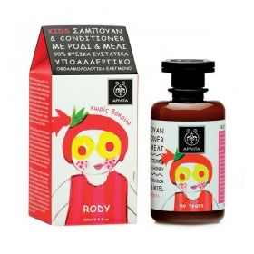 Σαμπουάν & Conditioner με ήπιους, φυσικούς καθαριστικούς και μαλακτικούς παράγοντες, ρόδι και μέλι, νερό καλέντουλας, αιθέριο έλαιο Γεράνι κατάλληλο για παιδιά και βιολογικά και φυτικά συστατικά που καθαρίζει απαλά τα μαλλιά και τα αφήνει λαμπερά και ευκολοχτένιστα.