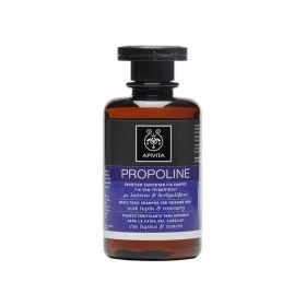 Η Apivita αντικαθιστά το νερό σε όλα τα προϊόντα Propoline με έγχυμα δενδρολίβανου το οποίο συμβάλλει στην τόνωση των μαλλιών.