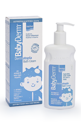 Η Babyderm dermatopia bath cream περιέχει συστατικά που έχουν μελετηθεί ως προς την ικανότητά τους να προσφέρουν απαλό & βαθύ καθαρισμό χωρίς να διαταράσσουν τον δερματικό φραγμό της επιδερμίδας ενώ παράλληλα προσφέρουν την ενυδάτωση και προστασία που έχει ανάγκη το ατοπικό δέρμα κατά τη διαδικασία του καθημερινού μπάνιου.