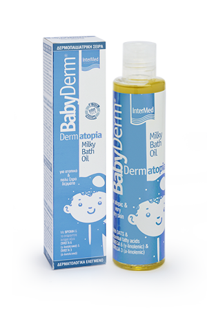 Το Babyderm dermatopia milky bath oil σχεδιάστηκε ειδικά ώστε σφραγίζει την απαραίτητη υγρασία στις βαθύτερες στοιβάδες τις επιδερμίδας κατά τη διαδικασία του καθημερινού μπάνιου, αφήνοντας το δέρμα απαλό και ελαστικό ενώ παράλληλα να ανακουφίζει από ερεθισμούς & φλεγμονές. Κατάλληλο σε περιόδους έξαρσης των συμπτωμάτων της ατοπικής δερματίτιδας.