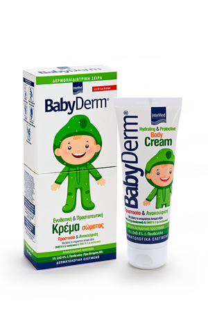 H Babyderm hydrating & Protective body cream αποτελεί μία πλούσια κρέμα εντατικής ενυδάτωσης, θρέψης και προστασίας του ευαίσθητου βρεφικού και παιδικού δέρματος. Η ενισχυμένη σύνθεσή της στα απαραίτητα για την επιδερμίδα Ω3 & Ω6 λιπαρά οξέα, ενισχύει την ακεραιότητα του επιδερμικού φραγμού έναντι καθημερινών παραγόντων που τείνουν να διαταράξουν τη δομή και τη λειτουργία του