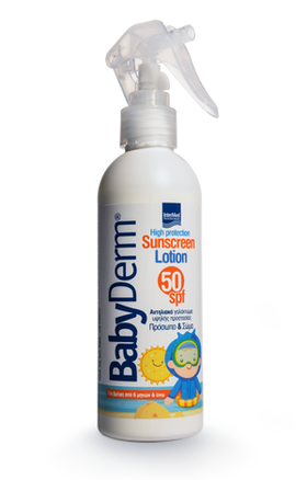 Το Babyderm Sunscreen Lotion 50 SPFσχεδιάστηκε για να προσφέρει υψηλή αντιηλιακή προστασία έναντι όλου του φάσματος των ακτίνων UV (A & B) σε παιδιά ηλικίας από 6 μηνών και άνω. Η εμπλουτισμένη σύνθεσή του σε υαλουρονικό οξύ και βιταμίνη Ε αναπλάθει την επιδερμίδα και την διατηρεί ενυδατωμένη και απαλή ενώ παράλληλα μειώνει τον κίνδυνο ανάπτυξης αλλεργικών αντιδράσεων χάρη στη μη προσθήκη τεχνιτών χρωμάτων και αρωμάτων. Η μοναδική υφή του Babyderm Sunscreen Lotion 50 SPF απλώνεται εύκολα χωρίς να αφήνει λευκά σημάδια.