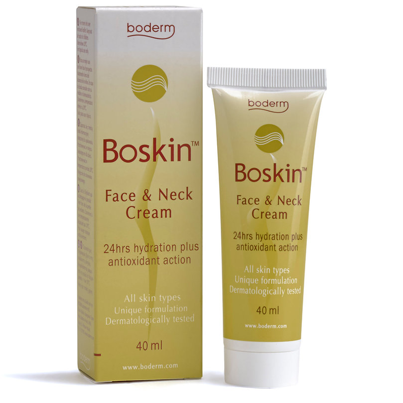 Η κρέμα Boskin™ Face & Neck αφήνει μια βελούδινη, μη λιπαρή, αίσθηση, και είναι κατάλληλη για χρήση σε όλους τους τύπους δέρματος.