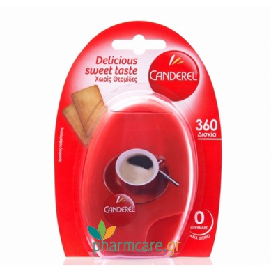 Συγκρίνετε το με την ζάχαρη η οποία περιέχει περίπου 20 θερμίδες ανα κουταλάκι και θα δείτε πόσο έξυπνη κίνηση είναι να χρησιμοποιείται το canderel στα ζεστά ροφήματα σας.
