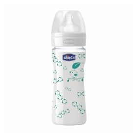 Chicco Μπιμπερό Nat. Glas. 240ml Bird 0m+ Θηλή Σιλικ.1 τμχ.