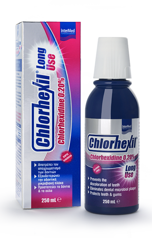 Το Chlorhexil 0,20% Mouthwash – Long Use με περιεκτικότητα σε χλωρεξιδίνη 0.20%, δημιουργήθηκε για την αποτελεσματική προστασία από την ουλοδοντική μικροβιακή πλάκα και την άμεση ανακούφιση και προστασία της στοματικής κοιλότητας από ερεθισμούς. Περιλαμβάνει ειδικό παράγοντα που αποτρέπει την προσκόλληση των χρωστικών εξαιτίας της χλωρεξιδίνης στα δόντια.