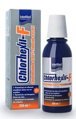 Το Chlorhexil-F Mouthwash είναι φθοριούχο στοματικό διάλυμα, με ισχυρή καθαριστική δράση για την καθημερινή υγιεινή περιποίηση της στοματικής κοιλότητας, τον αποτελεσματικό έλεγχο της ουλοοδοντικής μικροβιακής πλάκας, τη ενδυνάμωση της αδαμαντίνης των δοντιών και την ενεργοποίηση του αμυντικού συστήματος των ούλων χάρη στη ποικιλία βοτάνων που υπάρχουν στη σύνθεσή του. Απαραίτητο για την καθημερινή διατήρηση του θεραπευτικού αποτελέσματος μετά από περιοδοντική θεραπεία.