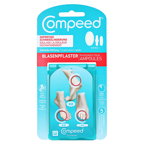 Η υδροκολλοειδής τεχνολογία των προϊόντων COMPEED® είναι μια ενεργή γέλη με σωματίδια που απορροφούν την υγρασία. Το ενισχυμένο στρώμα προστασίας από την τριβή αποσυμφορεί τη φουσκάλα ανακατανέμοντας την πίεση και προσφέροντας άμεση ανακούφιση από τον πόνο. Χάρη στα οβάλ άκρα του, το επίθεμα COMPEED® εφαρμόζει άψογα στην επιφάνεια του δέρματος. Έτσι, η τριβή μειώνεται και διασφαλίζεται ότι η διαδικασίας επούλωσης δεν διακόπτεται λόγω της επώδυνης επαφής του δέρματος με την επιφάνεια του παπουτσιού. Παραμένει στη θέση του για αρκετές ημέρες. Η διάρκεια μπορεί να διαφέρει κατά περίπτωση.