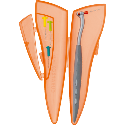 Περιέχει μια εργονομική πλαστική λαβή UHS 450 mini click και τέσσερα μεσοδόντια βουρτσάκια CPS prime (06, 07, 09, 011).