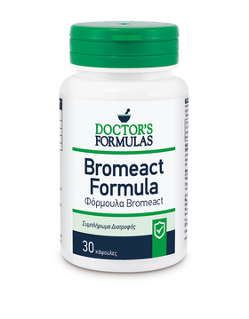 Η φόρμουλα BROMEACT είναι ένα συμπλήρωμα διατροφής που περιέχει το ένζυμο βρομελίνη 2500 GDU που προέρχεται από τον βλαστό του ανανά, ξηρό εκχύλισμα βοσουέλια (πεντακυκλικό τριτερπένιο) τιτλοδοτημένο με 65% βοσουελικά οξέα και ξηρό εκχύλισμα αγριοτρίφυλλου τιτλοδοτημένο με 20% κουμαρίνη.