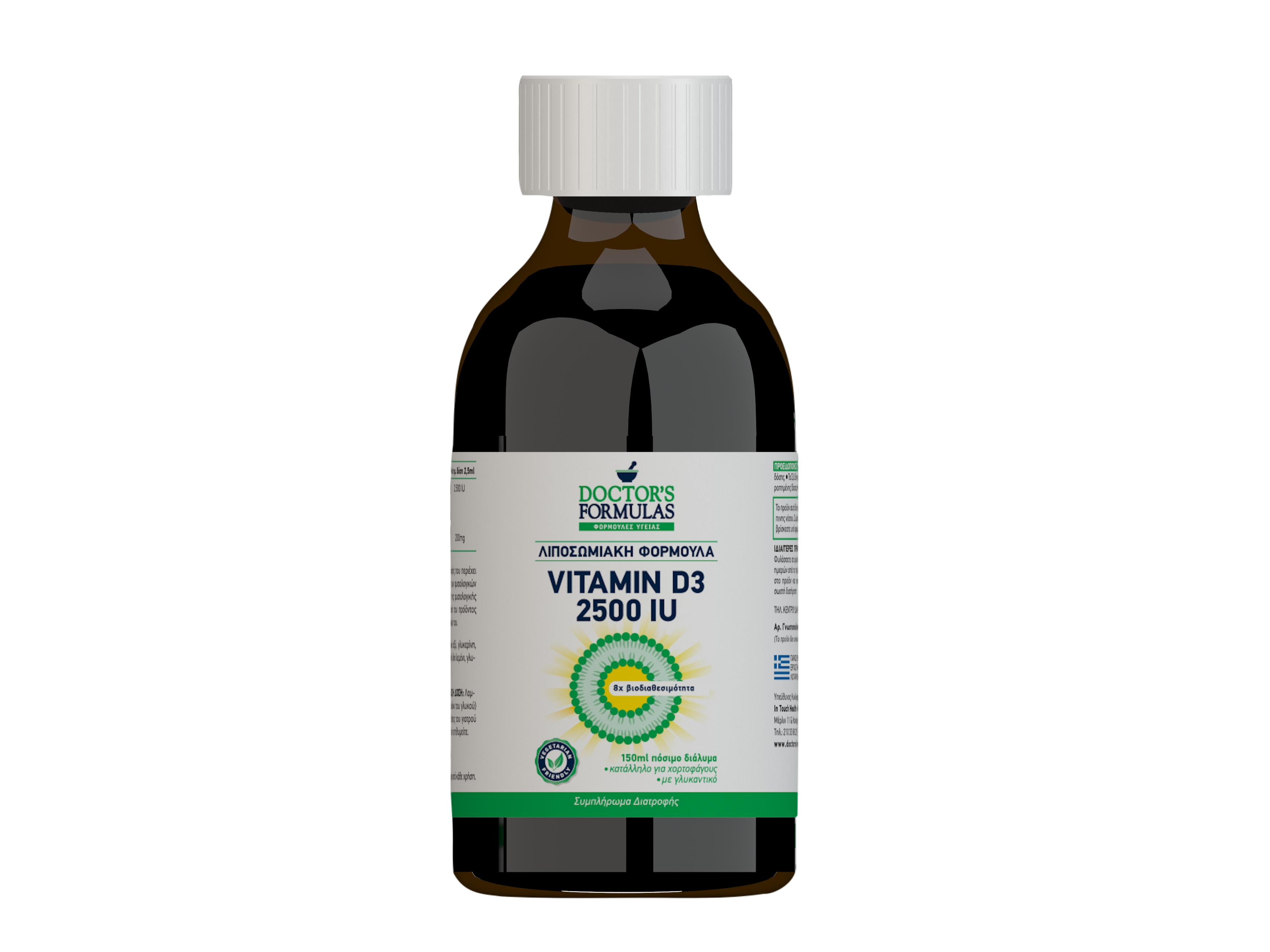 Η Λιποσωμιακή Φόρμουλα VITAMIN D3 2500IU είναι ένα συμπλήρωμα διατροφής που περιέχει 2500 μονάδες βιταμίνης D3 (ως χοληκαλσιφερόλη) η οποία συμβάλλει στη διατήρηση των φυσιολογικών επιπέδων ασβεστίου στο αίμα και στη φυσιολογική κατάσταση των οστών.