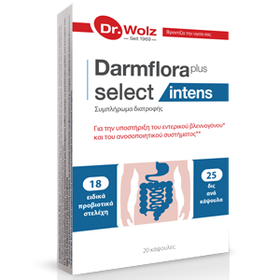 Το Darmflora plus select intens Dr. Wolz περιέχει 18 ειδικά προβιοτικά στελέχη στην υψηλή περιεκτικότητα των 25 x 109 C.F.U. (Colony Forming Unit) ανά ημερήσια δόση. Τα στελέχη των προβιοτικών προστατεύονται από τα γαστρικά και χολικά οξέα, καθώς επίσης από την επίδραση της θερμοκρασίας, λόγω της ειδικής κάψουλας κυτταρίνης που είναι ανθεκτική στα γαστρικά υγρά και έτσι τα προβιοτικά καταλήγουν άθικτα στο έντερο.