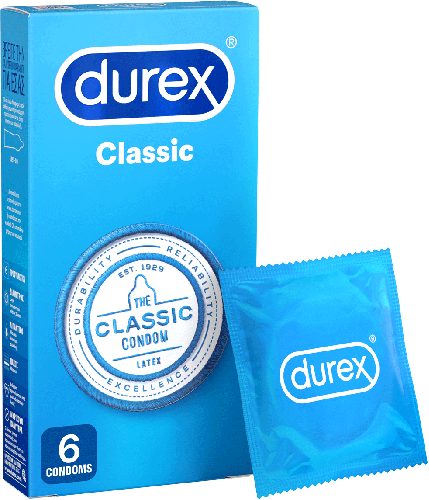Τα προφυλακτικά Durex Classic προσφέρουν την ίδια ανθεκτικότητα, αξιοπιστία και υπεροχή από τότε που ξεκινήσαμε το 1929. Παραμένοντας απλά, τα κλασικά προφυλακτικά της Durex σας προσφέρουν την προστασία που περιμένετε από την Durex, σε κατάλληλο σχήμα και προ-λιπασμένα με λιπαντικό σιλικόνης για πιο απαλή αίσθηση και πιο ευχάριστη εμπειρία