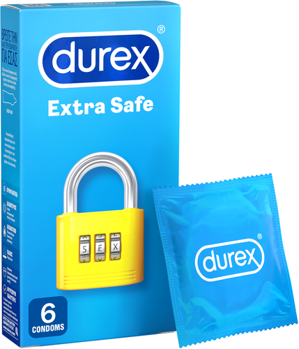 Τα προφυλακτικά Durex Extra Safe έχουν σχεδιαστεί για να σας προσφέρουν μέγιστη προστασία κατά τη διάρκεια του σεξ. Κατασκευασμένα από ελαφρώς παχύτερο λάτεξ και διαθέτοντας επιπλέον λιπαντικό σιλικόνης, τα προφυλακτικά Extra Safe μπορούν να σας χαρίσουν ηρεμία χωρίς να στερείστε καθόλου την απόλαυση. Είναι 100% ηλεκτρονικά ελεγμένα με 5 επιπλέον ελέγχους ποιότητας που διεξάγονται σε κάθε παρτίδα. Επίσης είναι δερματολογικά ελεγμένα. Μεγάλη διάμετρος Large (oνομαστικό πλάτος: 56mm).