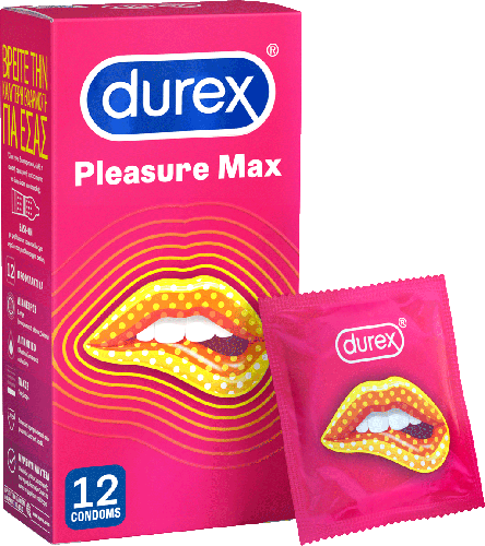 Τα Προφυλακτικά Durex Pleasure Max με ραβδώσεις και κουκκίδες έχουν σχεδιαστεί λαμβάνοντας υπόψη τη γυναίκα. Οι στρατηγικά τοποθετημένες ραβδώσεις και κουκκίδες κοντά στη βάση του προφυλακτικού αυξάνουν τη διέγερση, βελτιώνοντας την εμπειρία της γυναίκας. Είναι 100% ηλεκτρονικά ελεγμένα με 5 επιπλέον ελέγχους ποιότητας που διεξάγονται σε κάθε παρτίδα. Επίσης είναι δερματολογικά ελεγμένα. Μεγάλη διάμετρος Large (oνομαστικό πλάτος: 56mm).