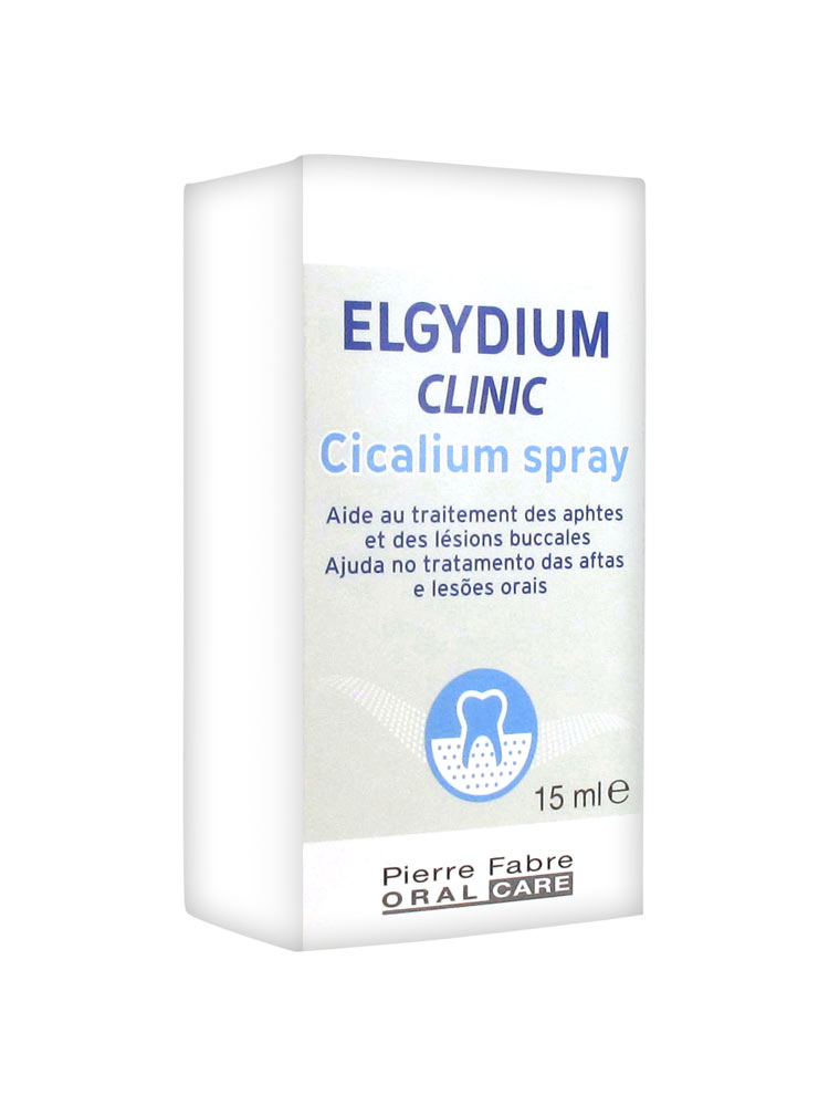 Το Elgydium Clinic Cicalium Spray είναι ένα spray για άφθες και στοματικές βλάβες που είναι εκτεταμένες ή σε δυσπρόσιτες περιοχές.