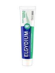 Η οδοντόκρεμα ELGYDIUM Sensitive συμβάλλει στη μείωση της οδοντικής υπερευαισθησίας. Μετά από δύο εβδομάδες χρήσης, η οδοντική υπερευαισθησία μειώνεται κατά 24,5% (και κατά 67,9% μετά από ένα μήνα)¹. Αυτή η οδοντόκρεμα για ευαίσθητα δόντια διεισδύει στα μεσοδόντια διαστήματα, τις αυλακώσεις και την ουλοδοντική σχισμή, προσφέροντας πλήρη αποτελεσματικότητα. Μια ήπια και χαμηλής αποτριβής οδοντόκρεμα που φροντίζει την ιδιαίτερα εύθραυστη επιφάνεια των ευαίσθητων δοντιών, ενώ παράλληλα τα προστατεύει από την τερηδόνα χάρη στην υδροφθορική νικομεθανόλη (Fluorinol®). Η gel σύνθεση εξασφαλίζει περισσότερη άνεση κατά το βούρτσισμα μετά από κάθε γεύμα. Κατάλληλη για ενήλικες και παιδιά από 12 ετών και άνω.