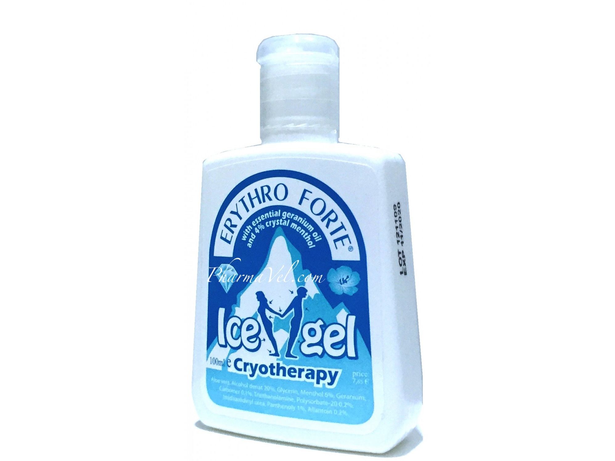 Το Erythro Forte Ice Gel Cryotherapy, με ευχάριστο άρωμα γεράνιο έιναι ιδανικό για τους αυχενικούς πόνους, τους πόνους μέσης, πλάτης, τις φλεγμονές, την επερένταση των μυών, την αρθρίτιδα, τα κουρασμένα πόδια, τους κιρσούς κ.α.