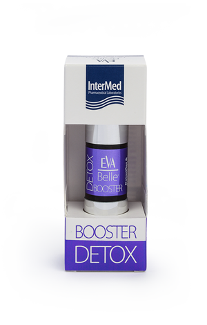 Tο Εva Belle Detox Booster αποτοξινώνει και αναζωογονεί την ταλαιπωρημένη επιδερμίδα, επαναφέροντας τη λάμψη της. Το εκχύλισμα Ginkgo Biloba δρα ως αποτοξινωτικός παράγοντας και το Πράσινο Τσάι ως αντιοξειδωτικός θωρακίζοντας την επιδερμίδα από τους επιβλαβείς παράγοντες που την επιβαρύνουν καθημερινά, όπως το στρες, οι ρύποι, και η ηλιακή ακτινοβολία. Η Potentilla Erecta ενισχύει την ελαστικότητα του δέρματος και εξασφαλίζει λάμψη, επιβραδύνοντας τη φωτογήρανση.