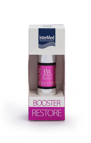 Tο Eva Belle Restore Booster χαρίζει ομοιόμορφο τόνο και βελτιώνει την όψη της επιδερμίδας. Το εκχύλισμα αρκτοστάφυλλου εξισορροπεί τις δυσχρωμίες της επιδερμίδας. Η ενισχυμένη σύνθεση με calendula, επανορθώνει άμεσα την επιδερμίδα ,εξασφαλίζοντας ορατή λάμψη. Παράλληλα, προστατεύει το δέρμα από τις ακραίες καιρικές συνθήκες και επιταχύνει την αποκατάσταση του μετά από αισθητικές μικροεπεμβάσεις.