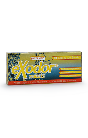 Το Exodor Tablets είναι ταμπλέτες για τη γρήγορη αντιμετώπιση της κακοσμίας του στόματος οποιαδήποτε στιγμή της ημέρας, μέσω της άμεσης εξουδετέρωσης των δύσοσμων ενώσεων που την προκαλούν χαρίζοντας ταυτόχρονα δροσερή αναπνοή που διαρκεί.