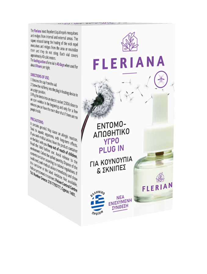 Φυσικό εντομοαπωθητικό υγρό Plug In. Με φυσική γερανιόλη για κουνούπια και σκνίπες. Κατάλληλο για όλες τις ηλεκτρικές συσκευές.