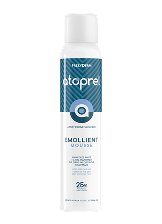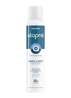 Μαλακτικός αφρός για την περιποίηση της ξηρής ευαίσθητης, εύθραυστης επιδερμίδας με ατοπική προδιάθεση. Η Τεχνολογία αφρού εξασφαλίζει ομοιόμορφη διασπορά των δραστικών και σχηματίζει ένα ισοπαχές και συνεχές film στο δέρμα. Ως αφρός αναλίπανσης συστήνεται στις φάσεις ηπιότερων ατοπικών συμπτωμάτων και στην προ-χειμερινή και μετα-χειμερινή περίοδο.