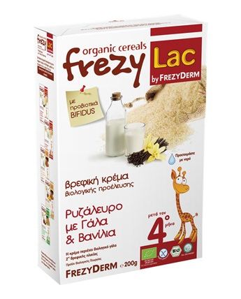 Βιολογική κρέμα για βρέφη μετά τον 4ο μήνα, με προβιοτικά Bifidus, ρύζι βιολογικής καλλιέργειας, φυσική βανίλια και 34% βιολογικό γάλα. Εμπλουτισμένο με όλες τις απαραίτητες βιταμίνες και ιχνοστοιχεία για την υγιή ανάπτυξη του βρέφους.