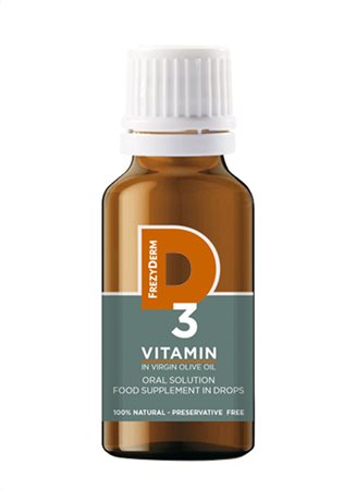Το FREZYDERM VITAMIN D3 σε παρθένο ελαιόλαδο περιέχει 5μg βιταμίνη D3 (χοληκαλσιφερόλης) ανά σταγόνα. Αποτελείται από μείγμα φυσικών τοκοφερολών (αντιοξειδωτικό) σε βάση παρθένου ελαιόλαδου και δεν περιέχει συντηρητικά. Η βιταμίνη D3 έχει πολλά σημαντικά οφέλη για τον οργανισμό: