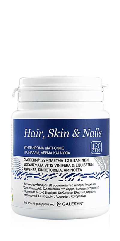 Ιδανικός συνδυασμός 28 συστατικών για δύναμη, αντοχή και όγκο στα μαλλιά, ελαστικότητα στο δέρμα, δυνατά και υγιή νύχια. Μοναδική σύνθεση με το καινοτόμο ενεργό συστατικό φυσικής προέλευσης Ovoderm®, πηγή φυσικών βιομορίων, όπως Κολλαγόνο Τύπου Ι, Υαλουρονικό οξύ, Ελαστίνη, Γλυκοζαμίνη, Λυσοζύμη, Χονδροϊτίνη και Κερατίνη. Περιέχει επίσης Βιοτίνη, Ψευδάργυρο και Σελήνιο που συμβάλλουν στη διατήρηση της φυσιολογικής κατάστασης των μαλλιών, των νυχιών και του δέρματος και Χαλκό που συμβάλλει στο φυσιολογικό χρωματισμό των μαλλιών και του δέρματος. Η σύνθεση είναι εμπλουτισμένη με Βιταμίνες A, B2, B3 που συμβάλλουν στη διατήρηση της φυσιολογικής κατάστασης του δέρματος, Βιταμίνη C που συμβάλλει στο φυσιολογικό σχηματισμό του κολλαγόνου για τη φυσιολογική λειτουργία του δέρματος και Βιταμίνη Ε που συμβάλλει στην προστασία των κυττάρων από το οξειδωτικό στρες.