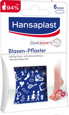 Η τεχνολογία εφαρμογής της Hansaplast διασφαλίζει ότι τα επιθέματα για φουσκάλες θα παραμείνουν στη θέση τους για πάνω από 48 ώρες.