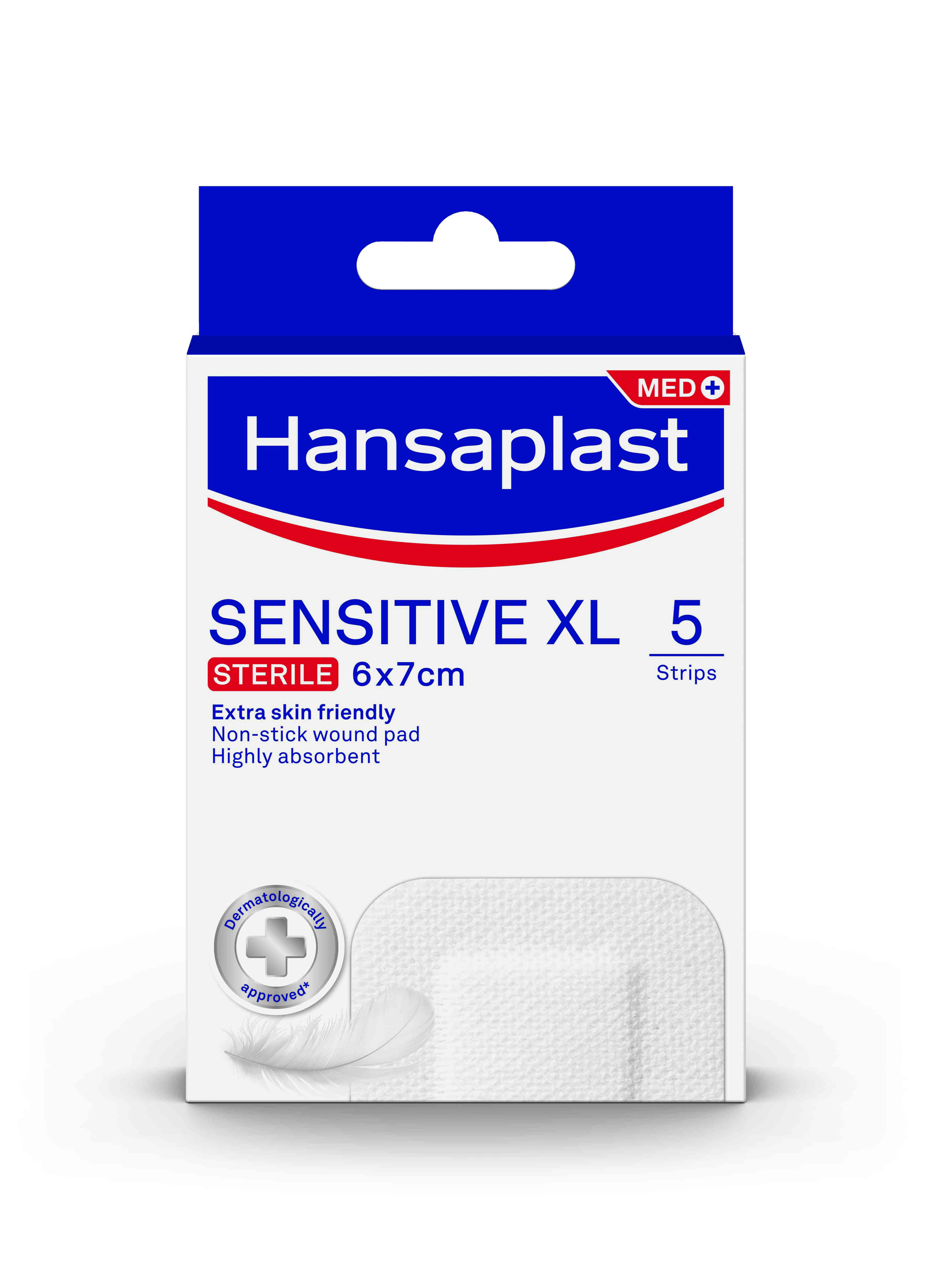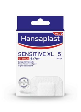 Τα επιθέματα Hansaplast Sensitive Antibacterial XL και XXL είναι αποστειρωμένα επιθέματα πληγών για την προστασία  μεγαλύτερων πληγών ή μετεγχειρητικών τραυμάτων.