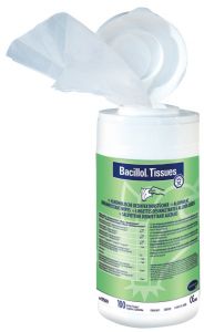 ✔ Τα υγρά μαντηλάκια Bacillol Tissues είναι έτοιμα προς χρήση απολυμαντικά μαντηλάκια για την ταχεία και αποτελεσματική απολύμανση ανθεκτικών σε αλκοόλες επιφανειών και ιατροτεχνολογικού εξοπλισμού, όπως στηθοσκόπια, οδοντιατρικά εργαλεία χειρός και γωνιώδη ή άλλα μέρη ιατροτεχνολογικών προϊόντων. Τα αλκοολούχα μαντηλάκια Bacillol Tissues είναι ιδανικά για περιοχές που απαιτούν ολοκληρωμένο φάσμα δράσης σε πολύ μικρό χρόνο.