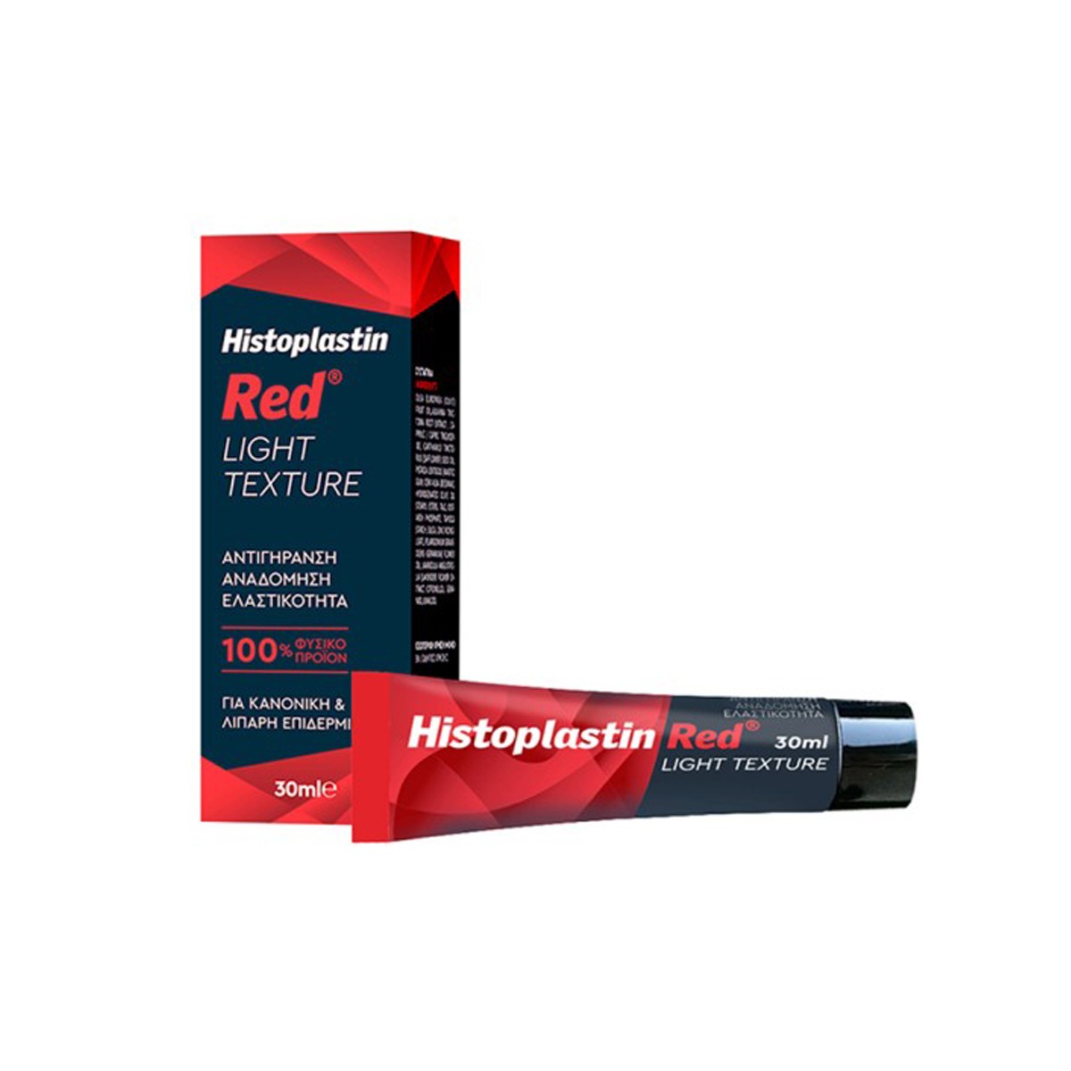 Η Histoplastin Red® LIGHT TEXTUREείναι ένα καλλυντικό προϊόν για την αναδόμηση και αναγέννηση της όψης της επιδερμίδας του προσώπου. Είναι κατάλληλη για λιπαρή & κανονική επιδερμίδα. Έχει ελαφριά υφή και απορροφάται άμεσα. Η Histoplastin Red® LIGHT TEXTURE είναι αποτέλεσμα της 40χρονης έρευνας του διεθνώς διακεκριμένου Καθηγητή Β. Παπαγεωργίου, με αντικείμενο τους αναγεννητικούς παράγοντες του δέρματος. Η Histoplastin Red® LIGHT TEXTURE είναι 100% φυσικό προϊόν, κατάλληλο για κάθε ηλικία. Προλαμβάνει και αντιμετωπίζει την καθημερινή φθορά και γήρανση της επιδερμίδας, επιταχύνοντας την ανανέωσή της από τις βλάβες που προκαλούν καθημερινοί επιβαρυντικοί παράγοντες, όπως: