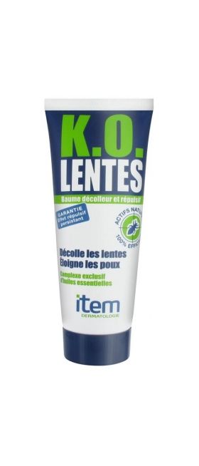 Item Dermatologie KO Lentes Anti-Nits Balm with Repellent Effect dislodges dead nits from the hair and repels head lice to prevent new infestation of the scalp. It is used as a complement to classic anti-lice treatment.