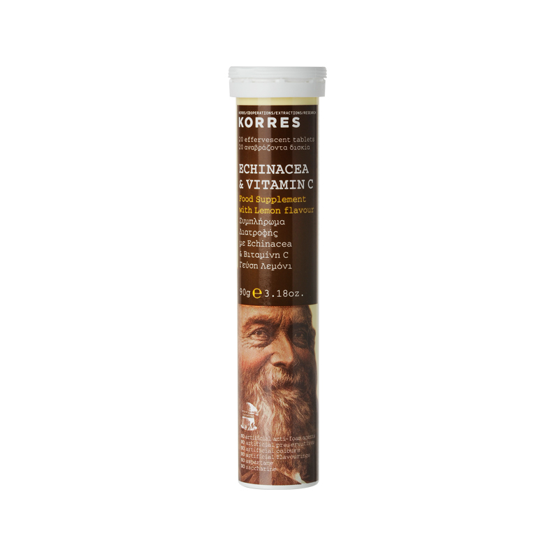 Μέσο οξίνισης: Κιτρικό οξύ, ρυθμιστής οξύτητας: Διττανθρακικό Νάτριο, L-Ασκορβικό Οξύ, Μαλτοδεξτρίνη, ξηρό εκχύλισμα Echinacea purpurea, φυσικό άρωμα λεμόνι.