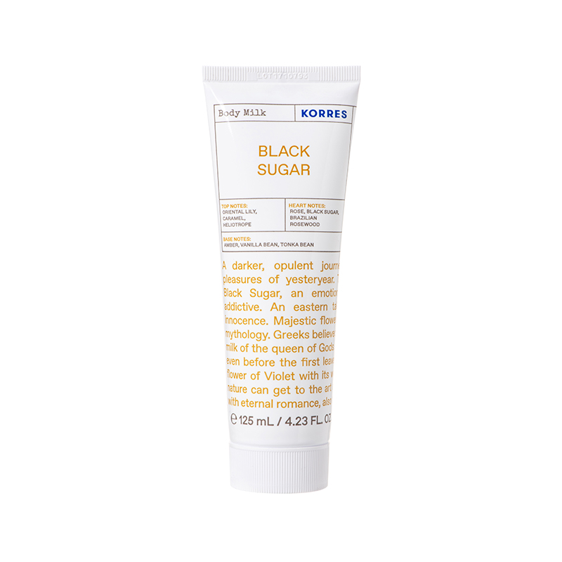 Το Korres Black Sugar Body Milk είναι ένα αρωματικό και ενυδατικό γαλάκτωμα σώματος, πλούσιο σε βιταμίνες, ιχνοστοιχεία και θρεπτικά έλαια, πηγή ενέργειας για την επιδερμίδα. Νότες από κεχριμπάρι υποδέχονται μία καρδιά από μαύρη ζάχαρη και τριαντάφυλλο. Η κορύφωση της αρωματικής συμφωνίας ανήκει στο κρίνο και στην καραμέλα.