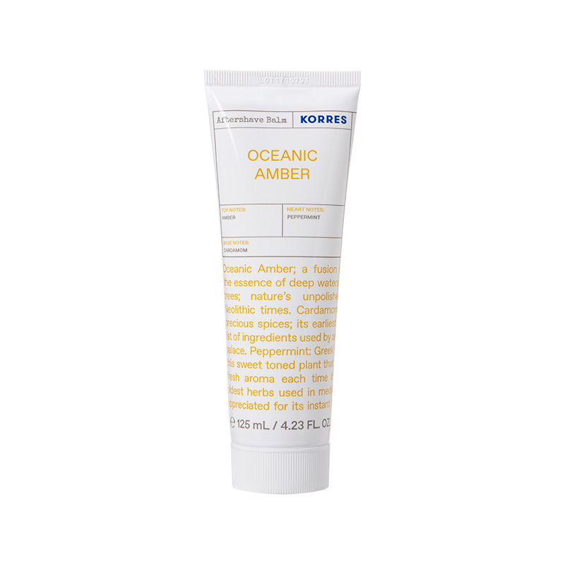 Το Korres Oceanic Amber Aftershave Balm είναι ένα γαλάκτωμα ελαφριάς υφής για μετά το ξύρισμα. Περιποιείται το δέρμα και το αφήνει απαλά αρωματισμένο. Νότες από κάρδαμο υποδέχονται μία καρδιά από μέντα. Η κορύφωση της αρωματικής συμφωνίας ανήκει στο κεχριμπάρι.