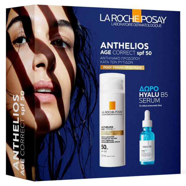 Το Anthelios Age Correct SPF50 της La Roche-Posay είναι μία νέα γενιά αντηλιακής προστασίας που προλαμβάνει και διορθώνει τα σημάδια φωτογήρανσης σε 4 εβδομάδες. Προστασία Ευρέος Φάσματος και ενεργά δερματολογικά συστατικά, Υαλουρονικό Οξύ, Νιασιναμίδη και PHE Resorcinol. Δώρο ο αντιρυτιδικος ορός Hyalu B5 Serum 10ml.
