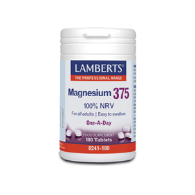 Το Magnesium 375 της Lamberts αποτελεί ένα μοναδικό σκεύασμα, καθώς περιέχει τις 4 σημαντικότερες μορφές αλάτων μαγνησίου (κιτρικό, ανθρακικό, οξείδιο και υδροξείδιο του μαγνησίου), διασφαλίζοντας ότι με 1 ταμπλέτα ημερησίως λαμβάνεται το 100% της Συνιστώμενης Ημερήσιας Πρόσληψης Μαγνησίου (375mg).