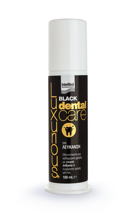 Η Luxurious Black Dental Care είναι μια λευκαντική οδοντόπαστα ειδικά σχεδιασμένη για καθημερινή χρήση, καθώς περιέχει ασφαλείς λευκαντικούς παράγοντες, οι οποίοι επαναφέρουν και διατηρούν το φυσικό λευκό χρώμα των δοντιών χαρίζοντας ένα υπέροχο χαμόγελο. Αφαιρεί αποτελεσματικά και με ασφάλεια τις επιφανειακές δυσχρωμίες και ταυτόχρονα ενδυναμώνει την αδαμαντίνη καθώς της προσφέρει φθόριο και τον απαραίτητο δομικό υδροξυαπατίτη.