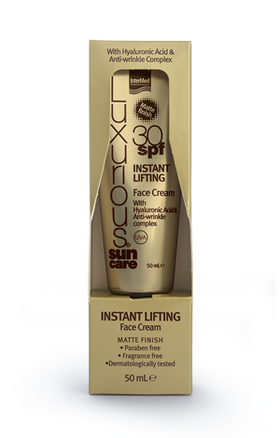 Η Luxurious Instant Lifting SPF30 είναι μια ενυδατική κρέμα προσώπου με υαλουρονικό οξύ & κλινικά δοκιμασμένο αντιρυτιδικό σύμπλοκο, που προσφέρει υψηλή αντηλιακή προστασία ενώ αποκαθιστά άμεσα τη στήριξη της επιδερμίδας του προσώπου και του λαιμού.