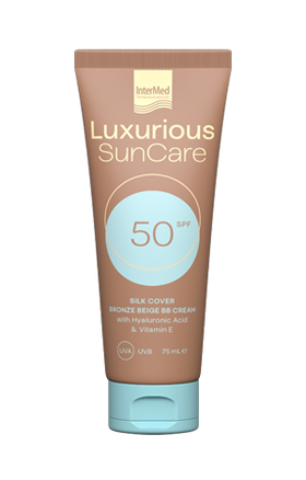 To Luxurious Sun Care Silk Cover Bronze είναι μια καινοτόμα, έγχρωμη αντιηλιακή κρέμα προσώπου πολύ υψηλής προστασίας και ταυτόχρονης ανάπλασης, με ήπια καλυπτική δράση. Η εξειδικευμένη του σύνθεση, εμπλουτισμένη με Υαλουρονικό Οξύ, σφραγίζει την υγρασία της επιδερμίδας ενισχύοντας τη φυσική αναπλαστική ικανότητα του δέρματος. Χάρη στη Βιταμίνη Ε που περιέχει, προσφέρει ισχυρή αντιγηραντική προστασία και ενυδάτωση της επιδερμίδας. Προλαμβάνει τη φωτογήρανση και τις δυσχρωμίες εξαιτίας της ηλιακής ακτινοβολίας.