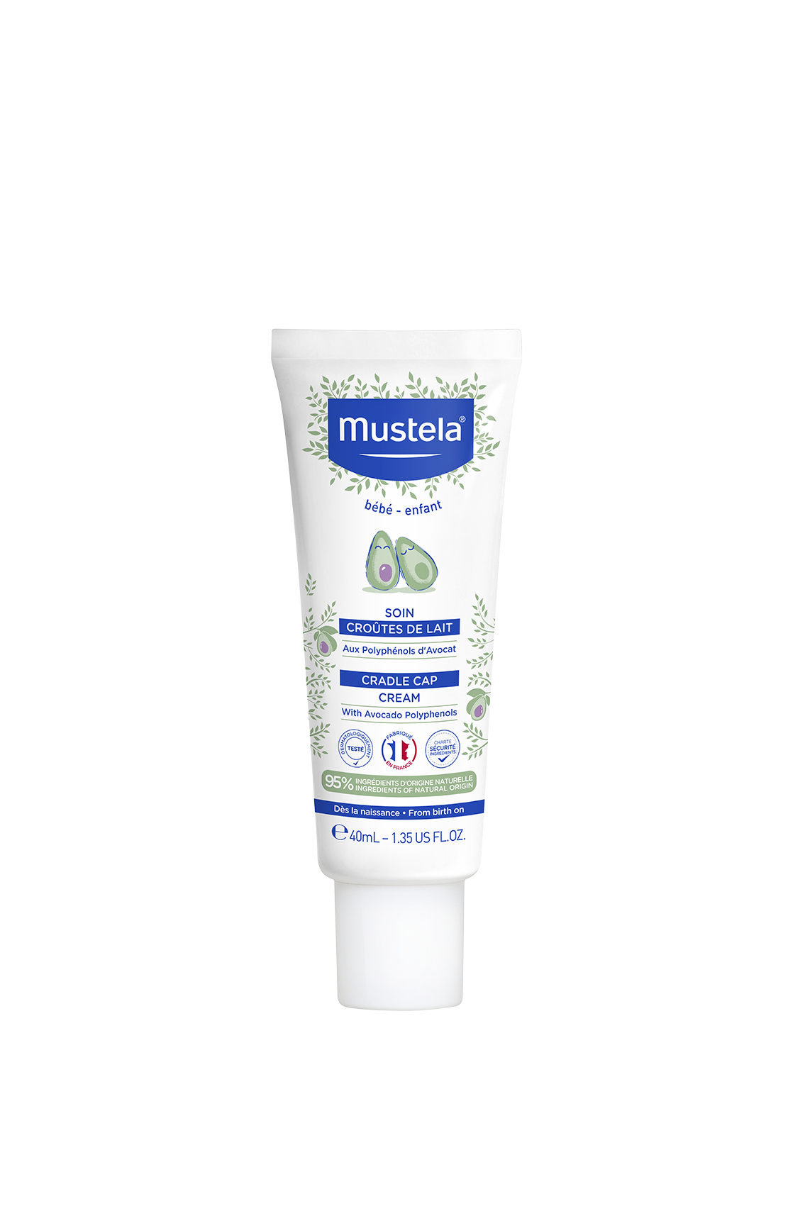 Η Cradle Cap Cream Μustela® Καταπραϋντική Κρέμα για τη νινίδα με εκχύλισμα αβοκάντο εφαρμόζεται απευθείας στην περιοχή του τριχωτού της κεφαλής του νεογέννητου και του μωρού*. Βοηθά στην εξάλειψη της νινίδας και μειώνει την επανεμφάνισή της, περιορίζοντας το υπερβολικό σμήγμα.